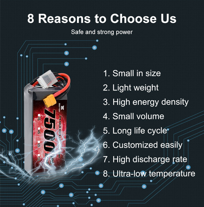 Prispôsobenie: Ponúkame služby OEM, ktoré spĺňajú vaše konkrétne požiadavky na batériu vrátaneVlastné nabíjateľné 3S4S6S 6500 mAh Semi Solid State Batéria pre bezpilotné lietadlá Small Flight Drone.