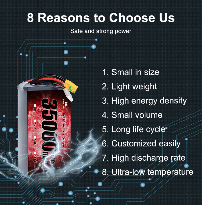 Vylepšená bezpečnosť:Zatiaľ čo lítium-iónové batérie s tekutými elektrolytmi môžu predstavovať bezpečnostné riziká v dôsledku potenciálneho úniku alebo tepelného úteku, batérie v tuhom stave, ktoré používajú lítium, sú vo svojej podstate bezpečnejšie. Pevný elektrolyt pôsobí ako bariéra, znižuje riziko skratov a zabráni tvorbe dendritov, ktoré môžu spôsobiť zlyhanie batérie.